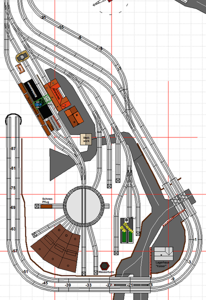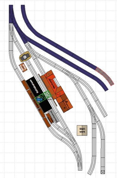 Die Einbindung von Kran und Gebäuden in's BW stellen die nachfolgenden Gleispläne dar.