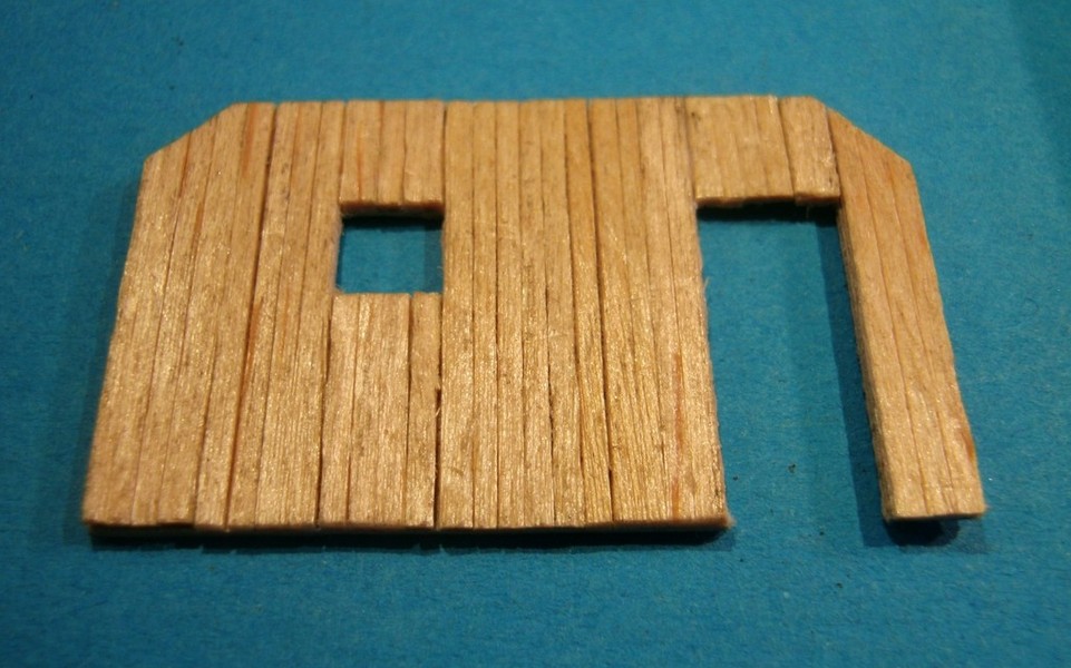 Die Maße des Krans kalkuliere ich an Hand der Holzverkleidung. Ein Brett rechne ich mit 12cm so dass eine Latte im Modell ca. 1,4mm Breite entspricht.