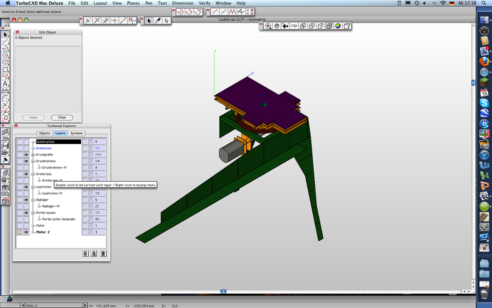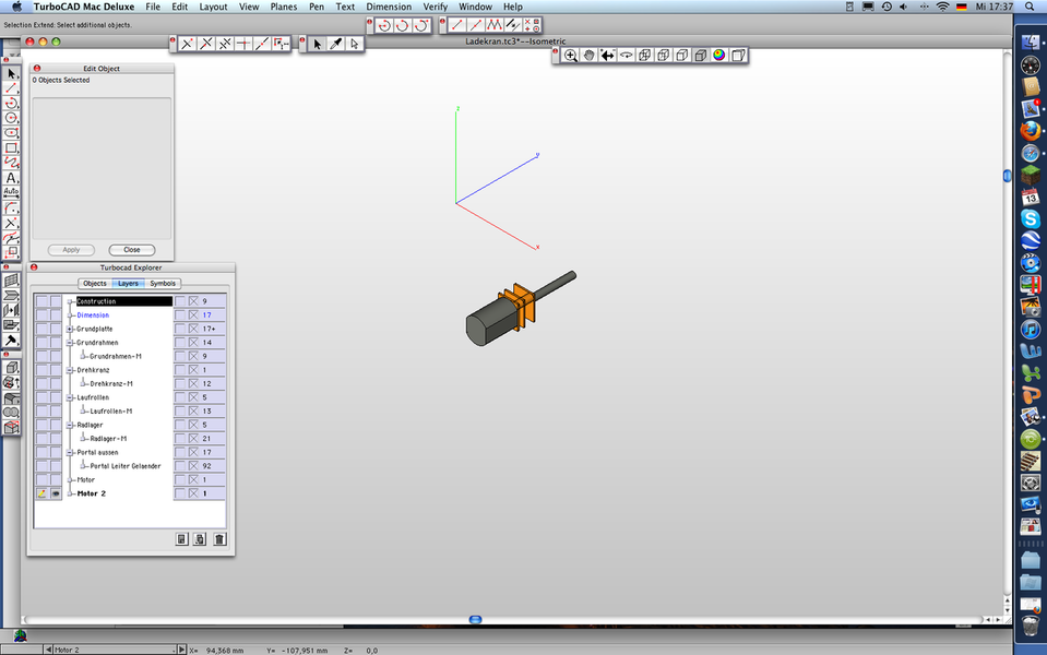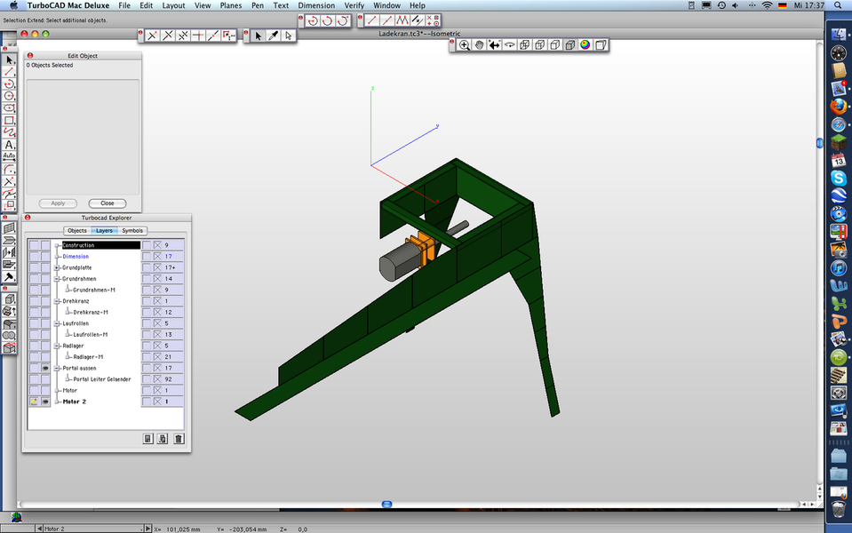 Zunächst werde ich eine genaue Konstruktionszeichnung erstellen, damit ich die Komponenten wie Motoren und Antriebselemente unterbringen kann. Einige Zeichnungen werde ich hier einstellen. Die Zeichnungen sind mit TurboCAD entstanden.