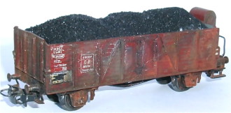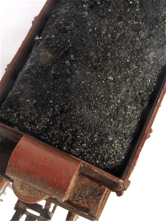 Hiermit lassen sich gut die teils übervollen Omm-Wagen mit Koksladung nachbilden, allerdings kommt die poröse Oberfläche des Originals nicht rüber.