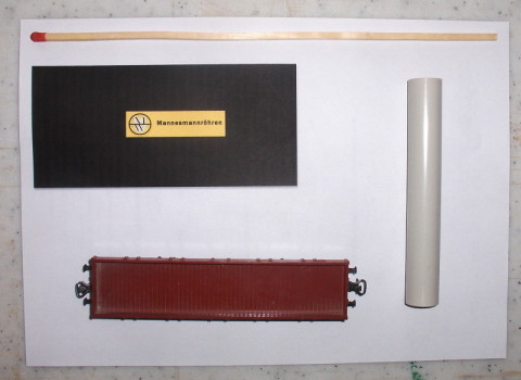 In Anlehnung an das Zugset 2854 möchte ich meinen Zug bestehend aus 12 langen Niederbordwagen und V200 mit entsprechenden Röhren beladen.
