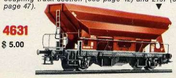 durch Drehen der Handhebel können die Schütten geöffnet werden; ebenfalls durch Entkupplungsgleise über Stift im Wagenboden
