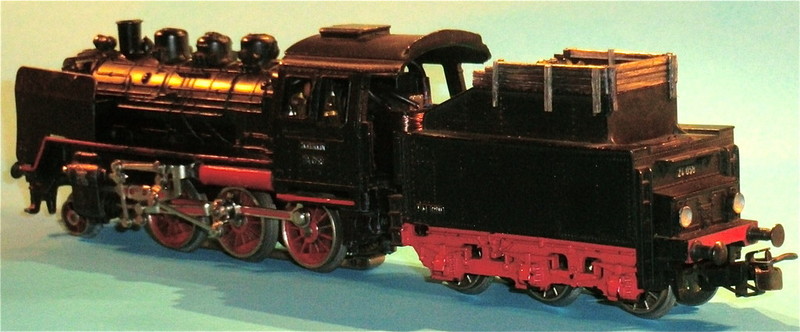 Im Netz habe ich mal ein Bild von einer BR 38 mit Tender-Wanderhöhung (6.6.2010 Die ÖGEG 38 1301 wartet noch ...) gefunden; diese habe ich mal mit meinen Kaffeerührstäbchen für meine BR 24 umgesetzt .