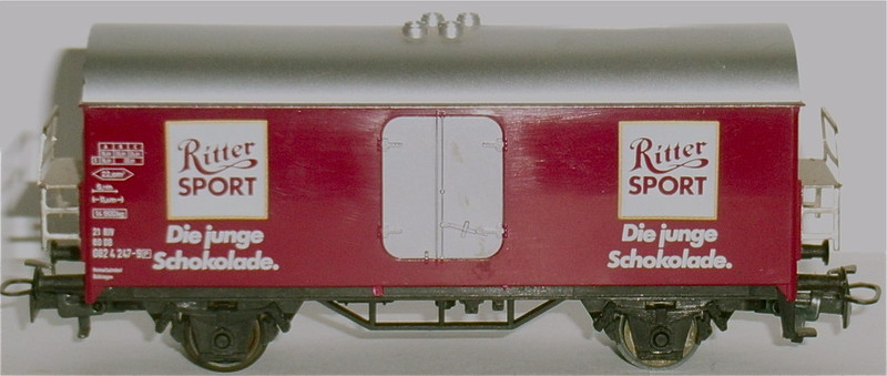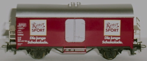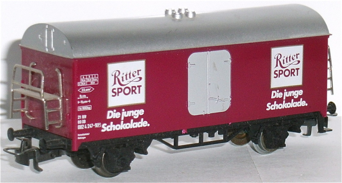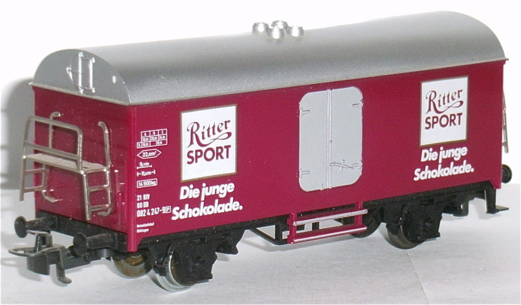gedruckt: "Ritter SPORT"; "Die junge Schokolade." Türen silbern