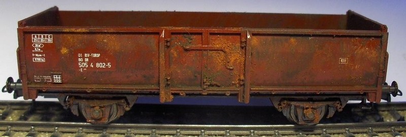 Zustand: eigentlich sind die Wagen schrottreif, Rostansätze, verbogene Haltestangen, die Ketten vom Märklin-Metallbaukasten, das orignale Ladegut fehlt aber wenn der Wagen mitfährt, fällt es nicht auf