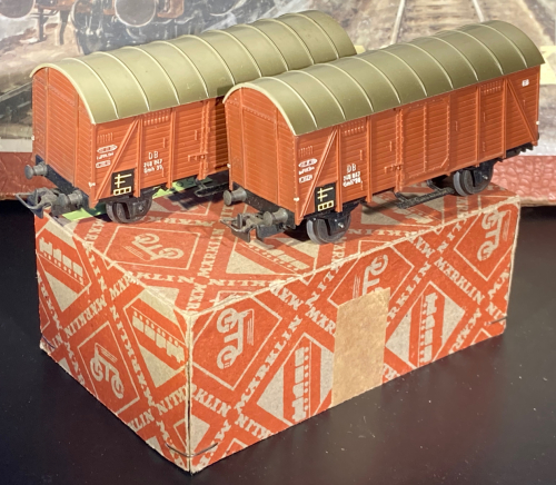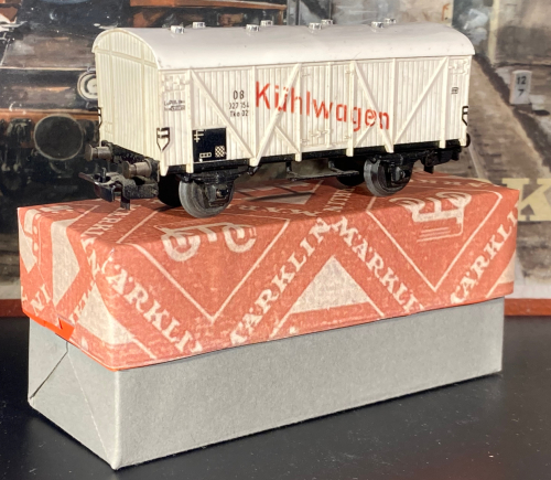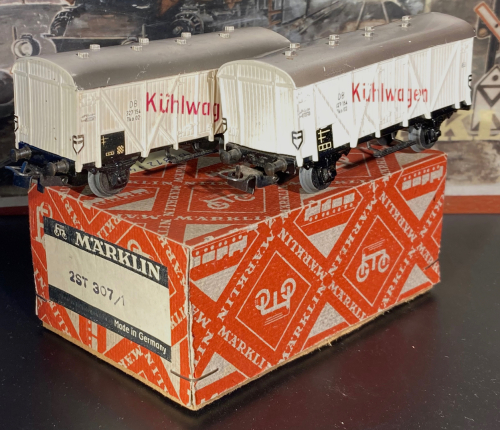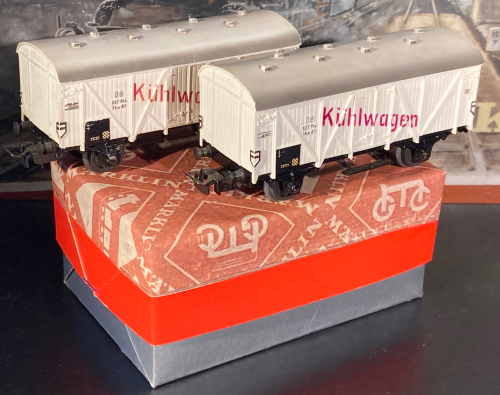 hier habe ich meine alten Kühlwagen 307/1 (4508), 307/2 (4509) und ein paar bauzeitgleiche gedeckte Güterwagen 306/1 (4505) und Kesselwagen 304A (4500) zusammengestellt.