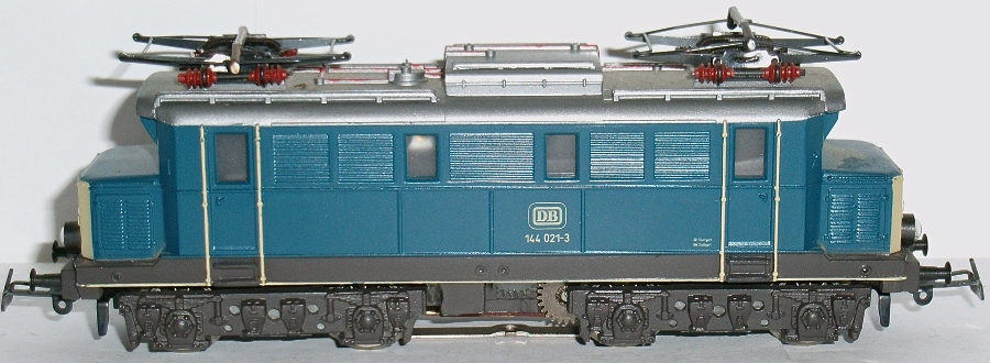 Betriebs-Nr.: 144 021-3 auf schwarzem Schild, gedruckt, weiß