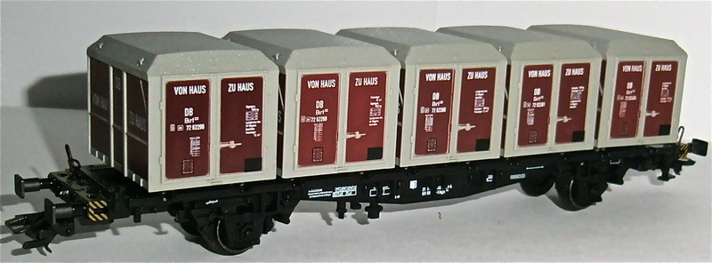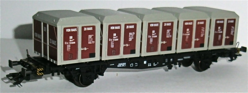 5 abnehmbare "VON HAUS ZU HAUS"-Behälter grau braun mit verschiedenen Betriebsnummern
