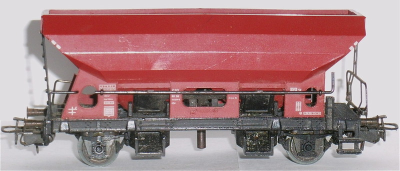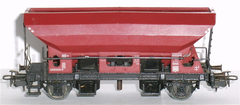 durch Drehen der Handhebel können die Schütten geöffnet werden; ebenfalls durch Entkupplungsgleise über Stift im