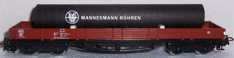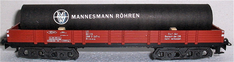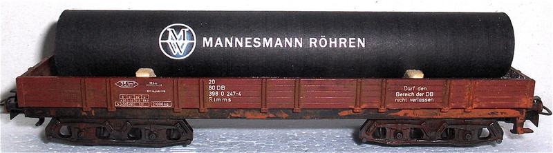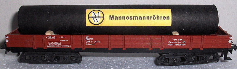 In Anlehnung an das Wagenset 2854 und den Niederbordwagen 4616 habe ich meine langen Niederbordwagen mit Mannesmann Pipeline-Röhren beladen.