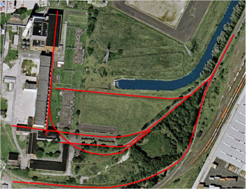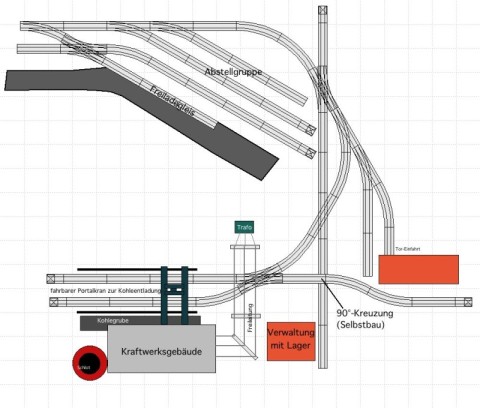 Diesen Plan habe ich in Anlehnung an die Kraftwerkszufahrt in Emden entworfen. Ergänzt durch ein paar Abstellgleise.