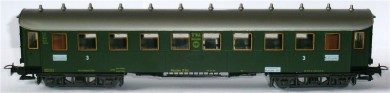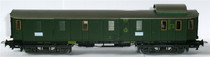 am Wagenkasten gelbe Reichsbahnbeschriftung auf grünem Grund