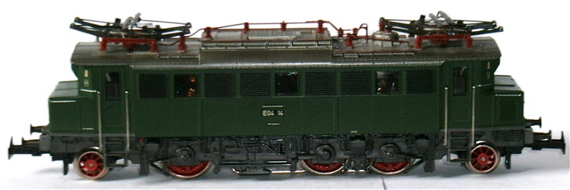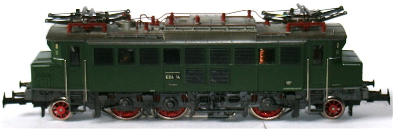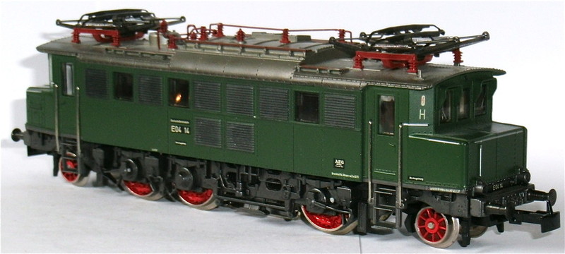gedruckt, Führerstandsbezeichnung "V" u. "H", "Deutsche Reichsbahn", "EO4 14", "RBD Augsburg" alle weiß auf schwarzem
