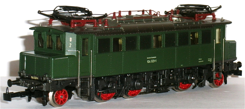 gedruckt, Führerstandsbezeichnung "1" u. "2", "Deutsche Bundesbahn", "1O4 021-1",