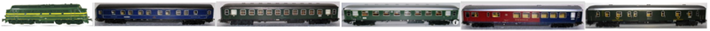 Leider kann ich keine Züge mit mehr als 5-6 Wagen planen, da sonst meine Bahnhofgleise zu kurz sind. Wenn man sich die Zugzusammenstellung des Originals ansieht stellt man fest, dass diverse Wagen mehr in diesem Zug liefen - es muss ein imposanter Zug gewesen sein.