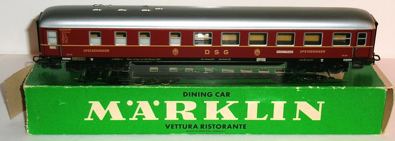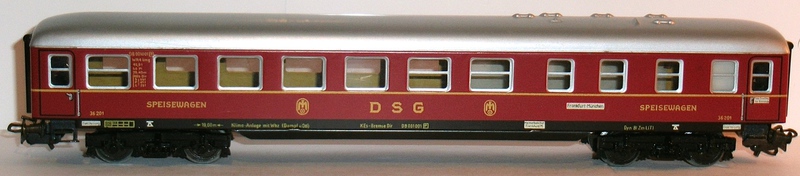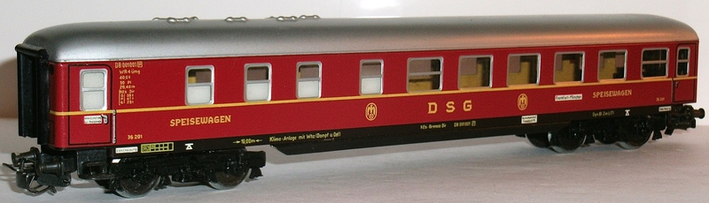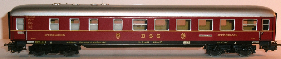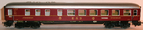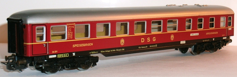 alte DB-Aufschriften gelb gedruckt, "SPEISEWAGEN", "DSG", DSG-Logo