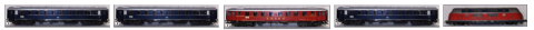 Die Züge bestanden aus zwei bis drei Sitzwagen und einem Speisewagen. Gepäckwagen kamen nur selten zum Einsatz.